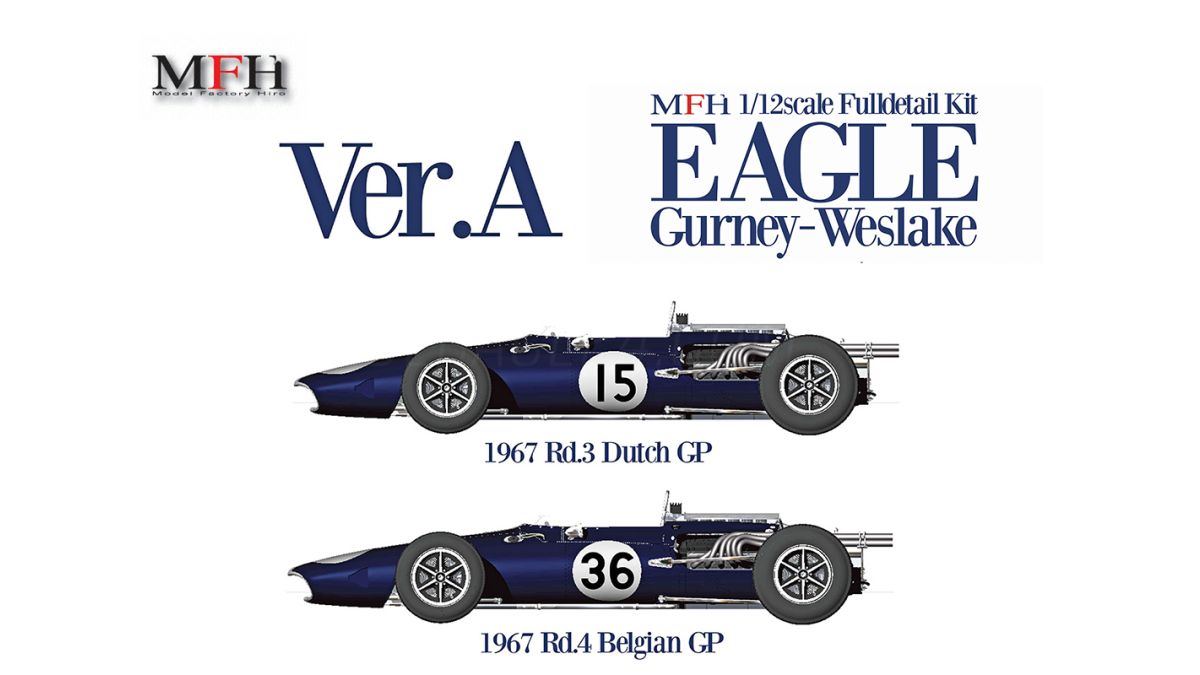 Eagle T1G Gurney-Weslake Version A Dan Gurney / Großer Preis der Niederlande und Belgien 1967. Voll detaillierter Bausatz aus Resin und Metall von Model Factory Hiro im Maßstab 1/12. MFH-K509