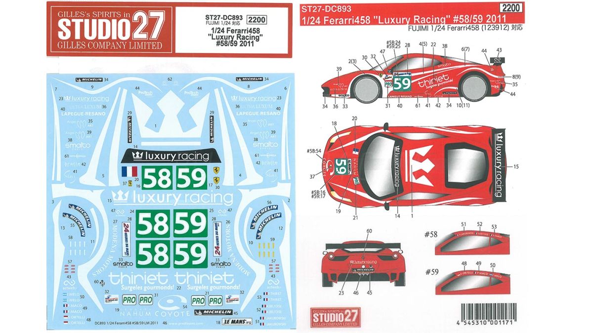 Ferrari 458 Luxury Racing #58 und #59 Le Mans 2011 - Decalsatz von Studio27 im Maßstab 1/24 für Fujimi-Bausatz